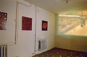 Почему Сталкер? Сама инсталляция вызывает ассоциации с фактурой фильмов Тарковского. Проецируемое на стену изображение старого водопроводного крана, звук падающих капель - медитативная фактура, напоминающая именно бедное красками, как будто монохромное пространство экранизации "Пикника". И те же вода, монотонный звук здесь дают образ того же - не бесконечного, но безграничного времени человеческой жизни, протекающего так же размеренно и необратимо, как движется пленка. По полу галереи разбросаны лотерейные билетики "Спринт". Можно поднять любой. Можно при этом поддаться искушению азарта и пожелать себе удачи, вскрывая его. Напрасно: даже если выпадет выигрыш - получить его невозможно. Так же, как невозможно выиграть.