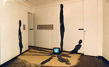 6 фотографий, 8 "теней"из черного картона, видеомонитор,
