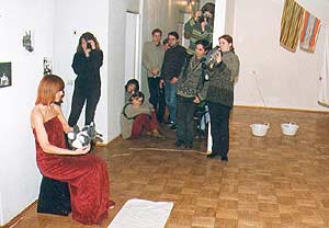 Так, вполголоса, восемь дней дюжина молодых людей из Царскосельской Мастерской (единственный в России государственный ВУЗ, готовящий художников и актёров, способных заниматься современным искусством) беседовала и открывала свою душу искушенному, ироничному и придирчивому зрителю с "брегов Невы". Конечно же в наше, как любят говорить, "непростое" и очень крикливое время само существование Мастерской перформанса и инсталляции в Царском Селе, - явление мало реальное и, скорее, - утопичное. Но художники "Запасного выхода" "позволяют себя обмануть" и их "не оставляет вера", исповедующая обращение к вечным ценностям и мужество не ставить эти ценности - любовь, верность, печаль и радость - в кавычки.