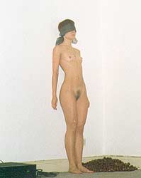 Я, обнаженная, с завязанными глазами очень медленно двигаюсь от одной стены галереи к другой.