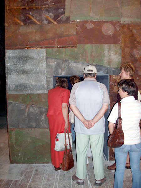 Привычно шокируют только москвичи из группы Escape (видеоинсталляция "Головокружение"). Суешь голову в специальную дырку и понимаешь, что бедная головушка оказалась на блюде перед компанией художников с ножами и вилками в руках. Хорошенький гуманизм! Хотя кураторы говорят, что это головокружение возникает исключительно как побочный результат поиска и обретения новых форм надежды. Придется поверить им на слово, народ они очень подкованный и твердый".